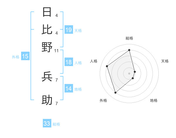 日比野 兵助さんの天格は19画の1点!