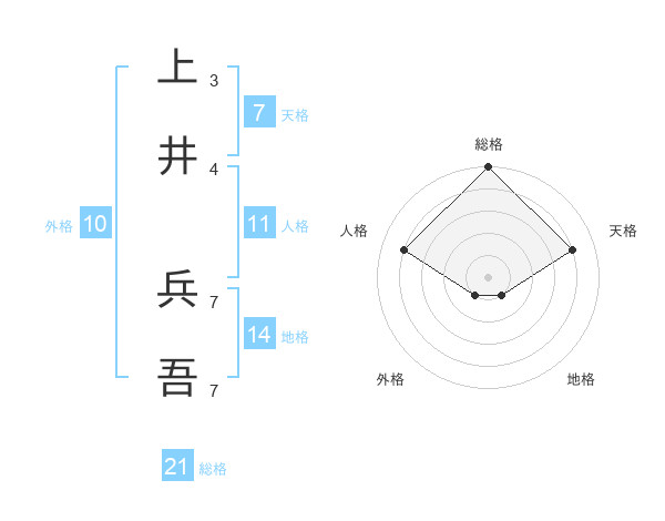 上井 兵吾さんを姓名の画数から五運を鑑定