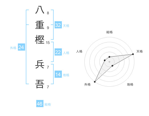 八重樫 兵吾さんを姓名の画数から五運を鑑定