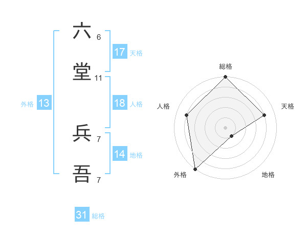 六堂 兵吾さんを姓名の画数から五運を鑑定