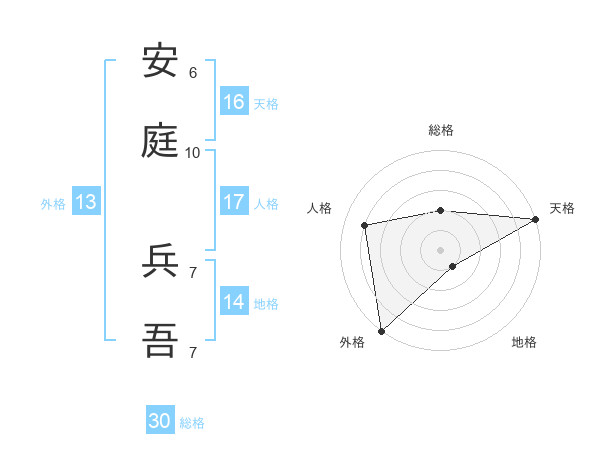 安庭 兵吾さんの外格は13画の5点!