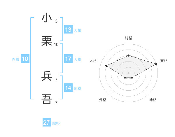 小栗 兵吾さんの総格は27画の3点!