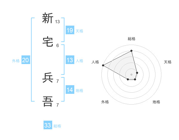 新宅 兵吾さんを姓名の画数から五運を鑑定