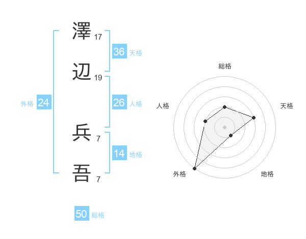 澤辺 兵吾さんの総格は50画の2点!