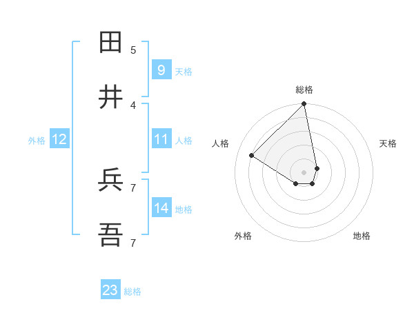 田井 兵吾さんを姓名の画数から五運を鑑定
