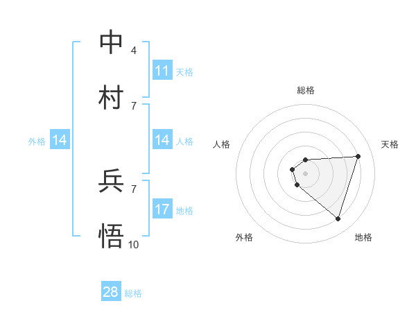 中村 兵悟さんを姓名の画数から五運を鑑定