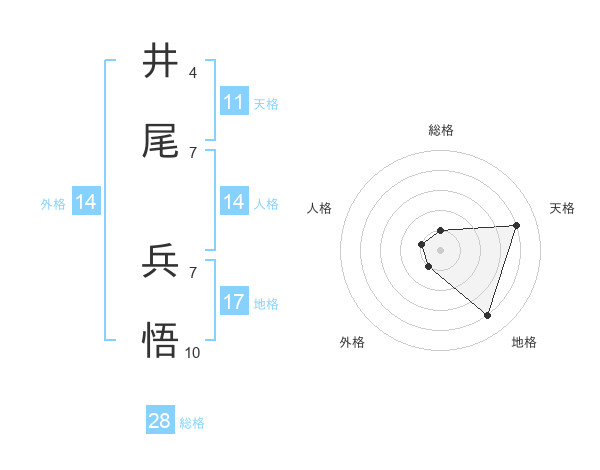 井尾 兵悟さんを姓名の画数から五運を鑑定