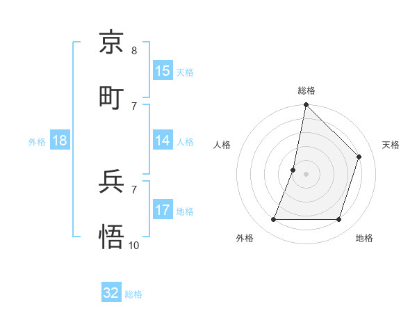 京町 兵悟さんの総格は32画の5点!