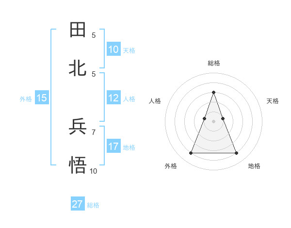 田北 兵悟さんの総格は27画の3点!