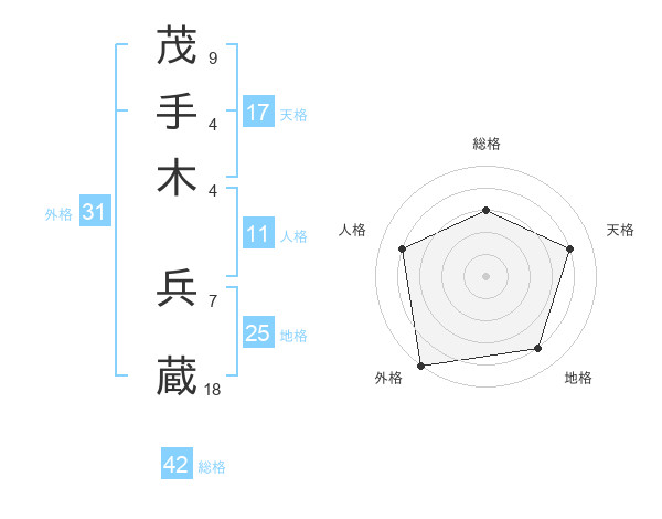 茂手木 兵蔵さんの総格は42画の3点!