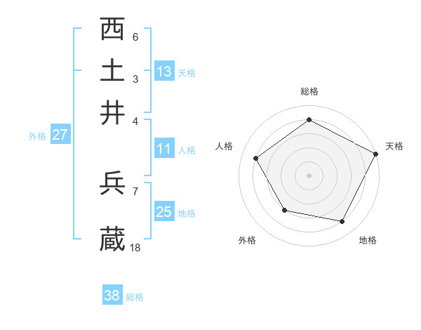 西土井 兵蔵さんを姓名の画数から五運を鑑定