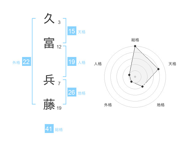 久富 兵藤さんの総格は41画の5点!