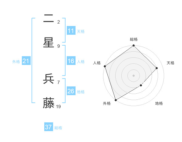 二星 兵藤さんの総格は37画の5点!