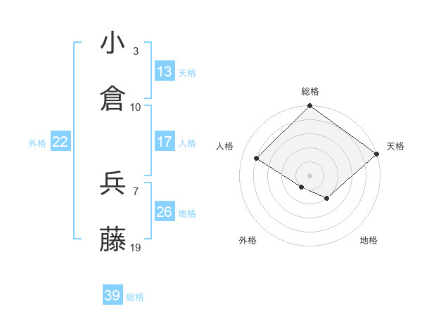 小倉 兵藤さんを姓名の画数から五運を鑑定