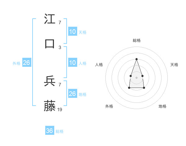 江口 兵藤さんを姓名の画数から五運を鑑定