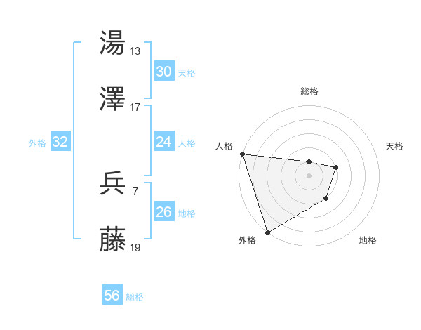 湯澤 兵藤さんの総格は56画の1点!