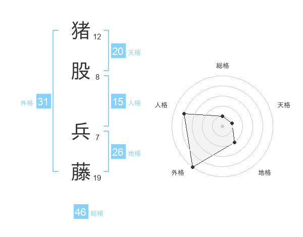 猪股 兵藤さんを姓名の画数から五運を鑑定