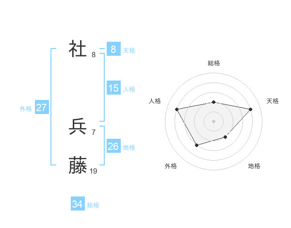 社 兵藤さんの総格は34画の2点!