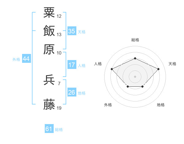 粟飯原 兵藤さんを姓名の画数から五運を鑑定