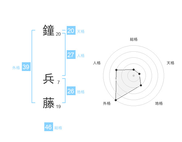 鐘 兵藤さんを姓名の画数から五運を鑑定
