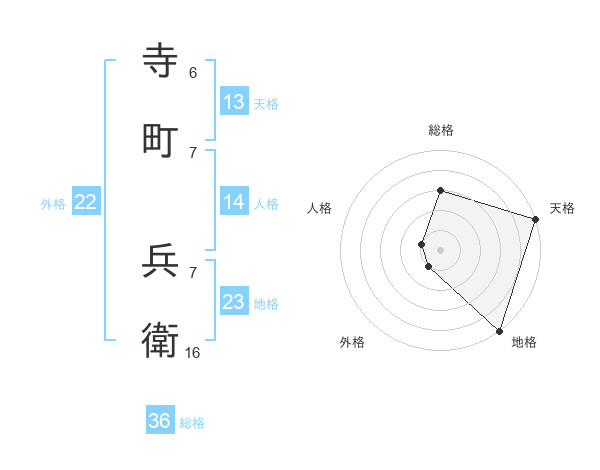 寺町 兵衛さんを姓名の画数から五運を鑑定