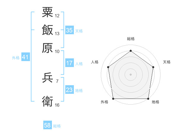 粟飯原 兵衛さんを姓名の画数から五運を鑑定
