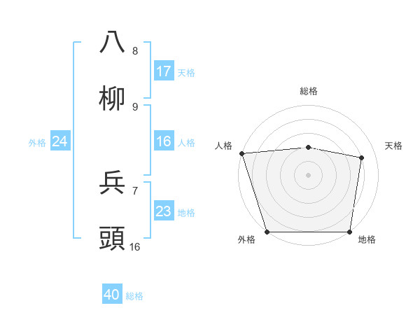 八柳 兵頭さんを姓名の画数から五運を鑑定