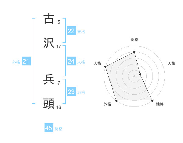 古沢 兵頭さんの地格は23画の5点!