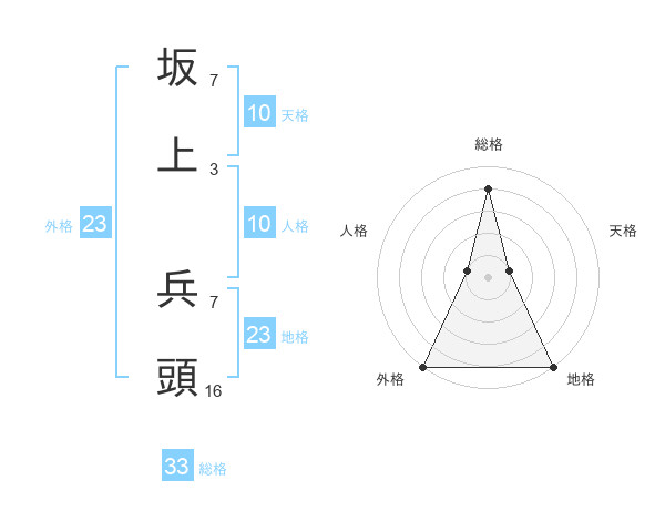 坂上 兵頭さんを姓名の画数から五運を鑑定