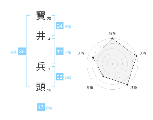 寶井 兵頭さんの総格は47画の5点!