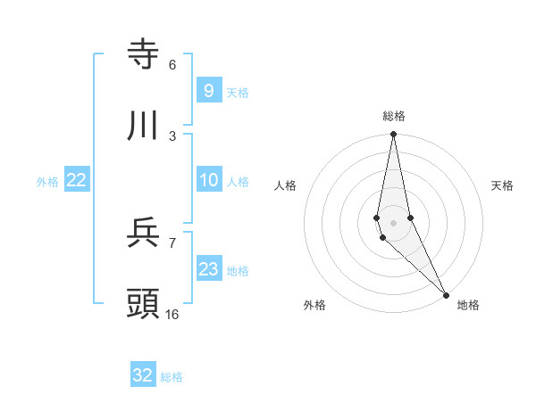 寺川 兵頭さんを姓名の画数から五運を鑑定