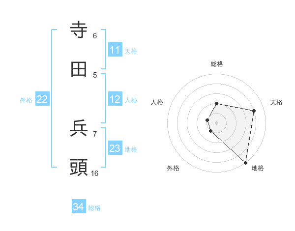寺田 兵頭さんを姓名の画数から五運を鑑定