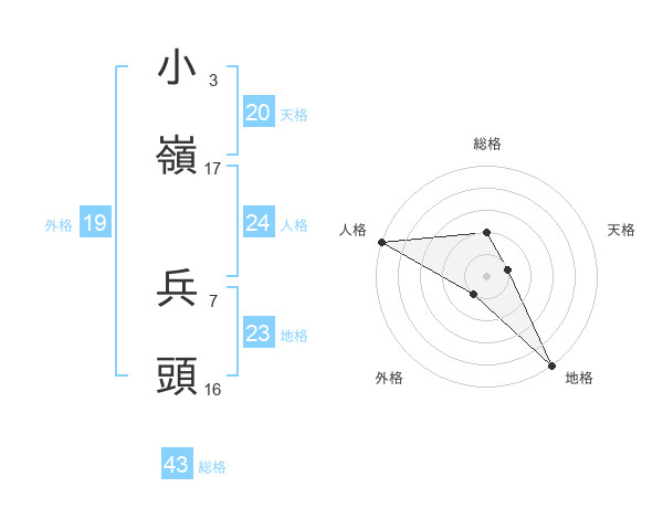 小嶺 兵頭さんの総格は43画の2点!
