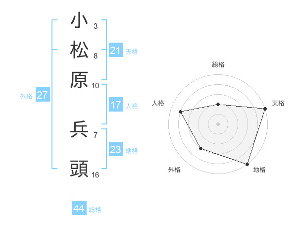 小松原 兵頭さんの地格は23画の5点!