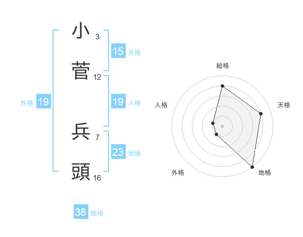 小菅 兵頭さんの総格は38画の4点!