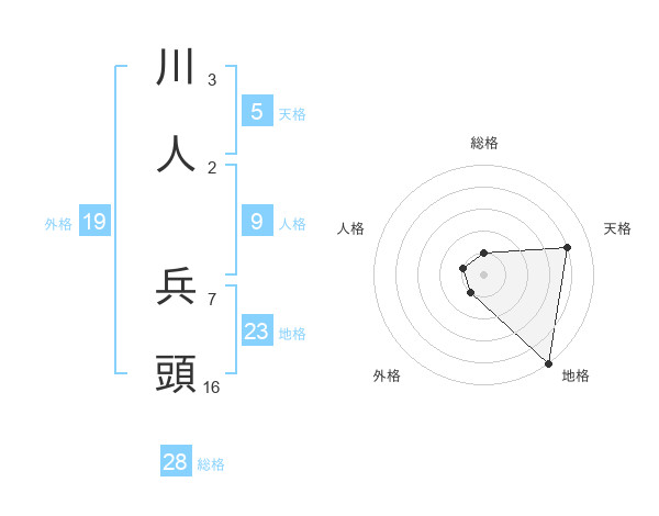 川人 兵頭さんの総格は28画の1点!