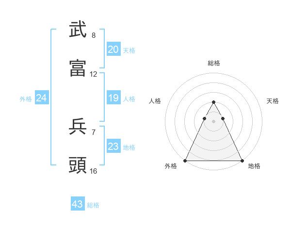 武富 兵頭さんの総格は43画の2点!