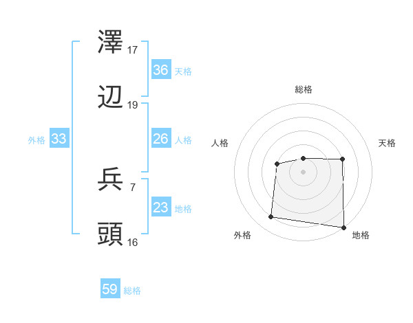 澤辺 兵頭さんの総格は59画の1点!