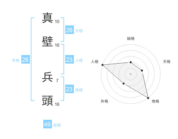 真壁 兵頭さんの総格は49画の2点!