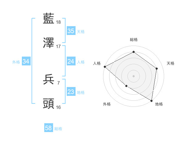 藍澤 兵頭さんを姓名の画数から五運を鑑定