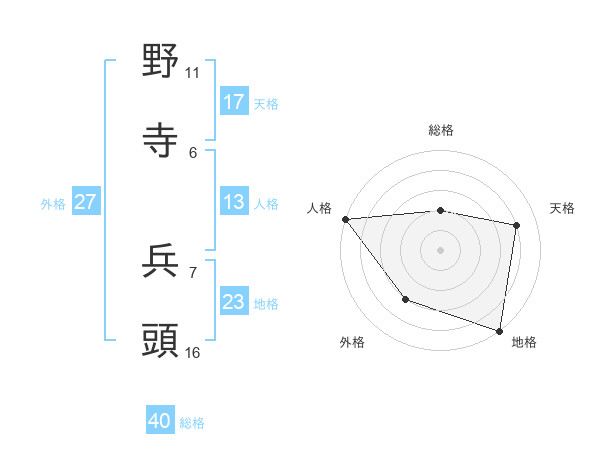 野寺 兵頭さんを姓名の画数から五運を鑑定