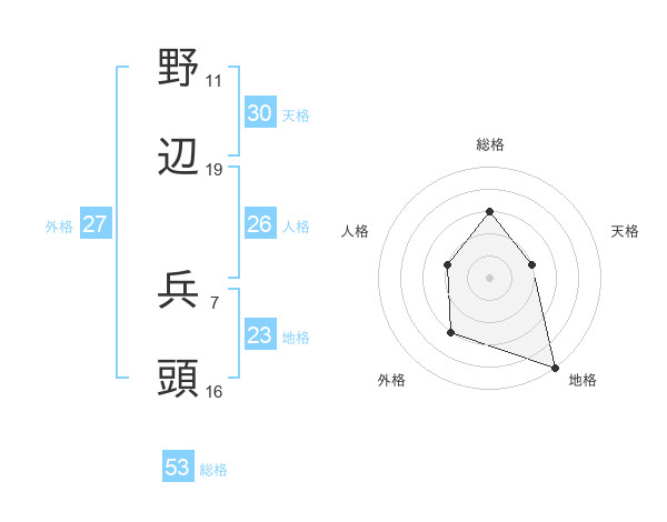野辺 兵頭さんを姓名の画数から五運を鑑定