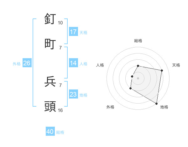 釘町 兵頭さんの総格は40画の2点!