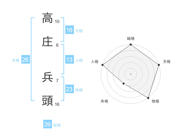 高庄 兵頭さんの総格は39画の5点!