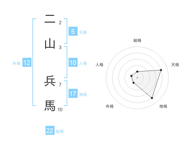 二山 兵馬さんを姓名の画数から五運を鑑定