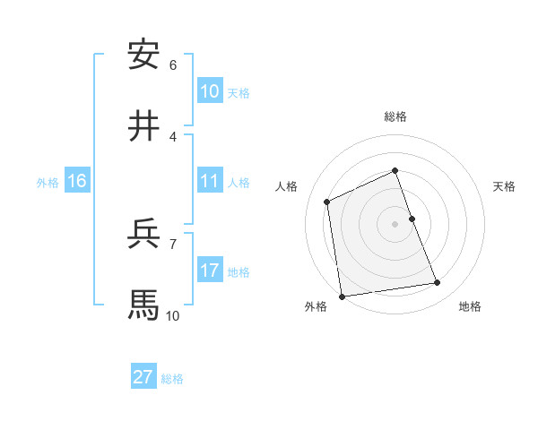 安井 兵馬さんを姓名の画数から五運を鑑定