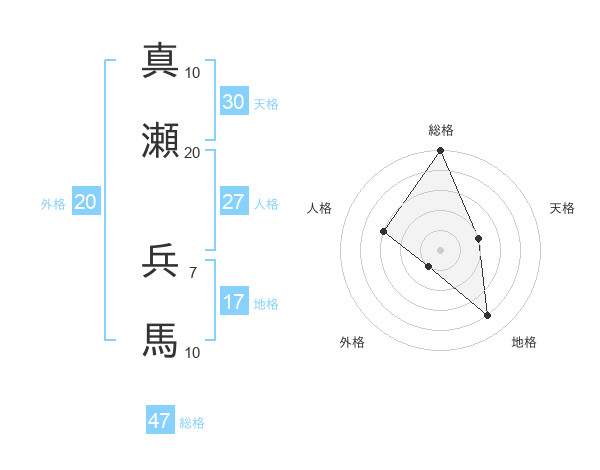 真瀬 兵馬さんの総格は47画の5点!