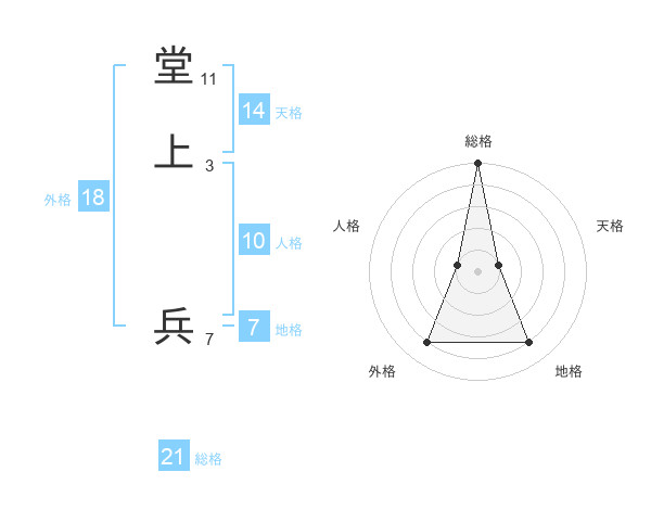 堂上 兵さんの総格は21画の5点!