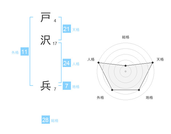 戸沢 兵さんを姓名の画数から五運を鑑定