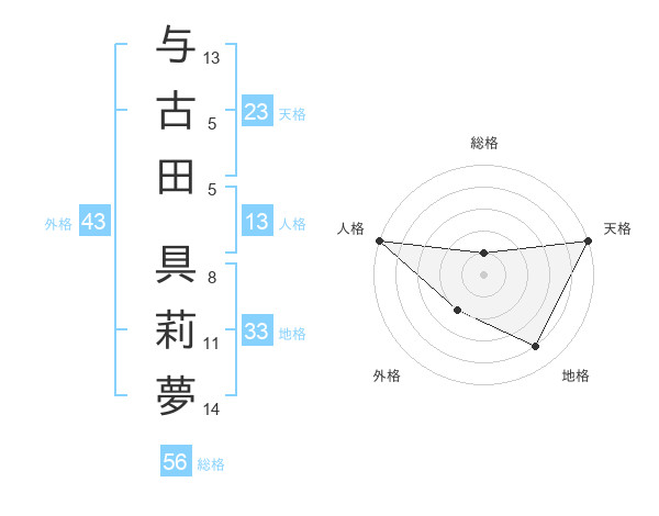 与古田 具莉夢さんの天格は23画の5点!